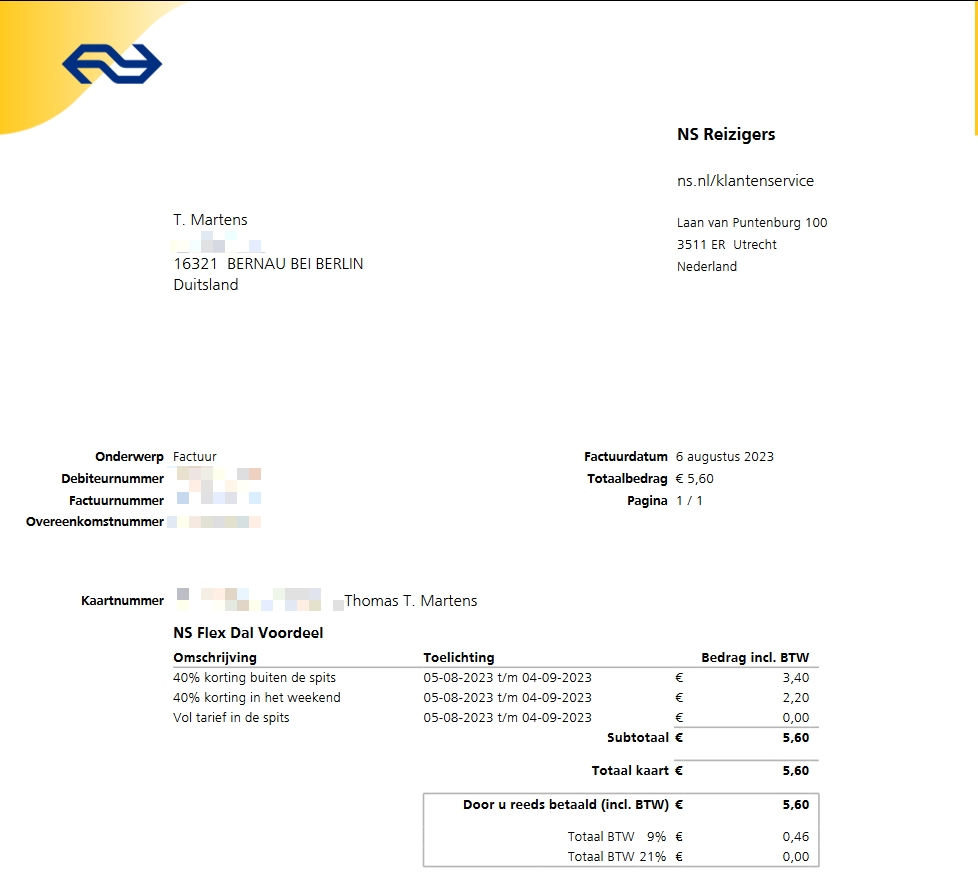 Das NS Flex-Abo bietet noch mehr, als nur den Rabatt. So wird für Reisen mit der OV-chipkaart kein Guthaben mehr auf der Karte benötigt. Stattdessen wird eine monatliche Rechnung mit den durchgeführten Fahrten erstellt und der Rechnungsbetrag vom angegebenen Konto abgebucht.