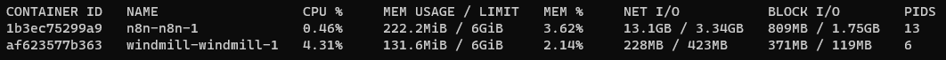It really depends. The memory baseline is significantly lower with Windmill. Running a single n8n instance in main mode takes about 220MB for me, while my Windmill setup with 3 workers takes considerably less (130MB). In terms of CPU usage, it’s pretty much the opposite. n8n uses considerably less CPU than Windmill at idle: