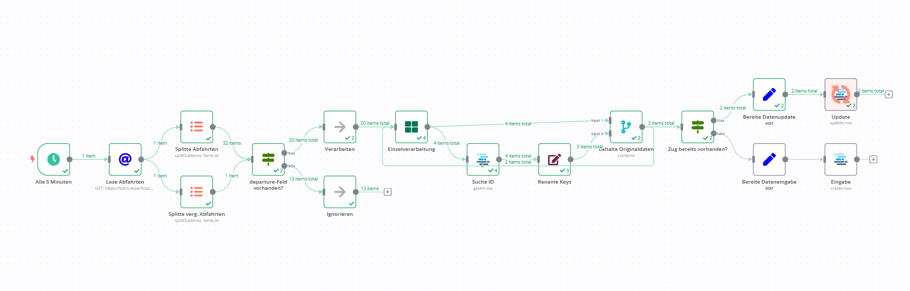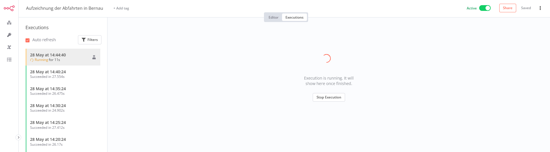 Manual (“test”) executions on the other hand are displayed in full detail by n8n and data shows up as it comes in. This makes debugging quite fun: